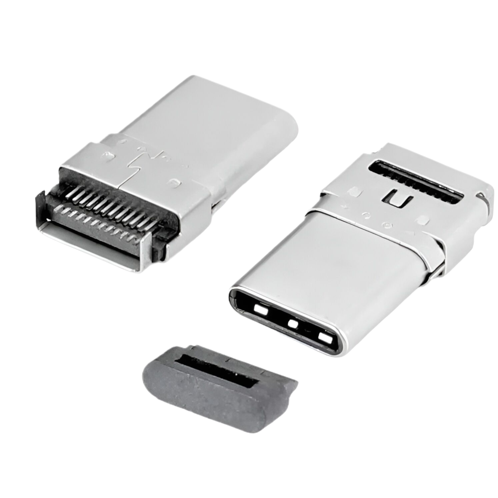 TYPE C 24P公頭 兩腳沉板1.3MM 雙排貼片SMT CH=0.15MM 長(zhǎng)度L=15.5MM 雙殼