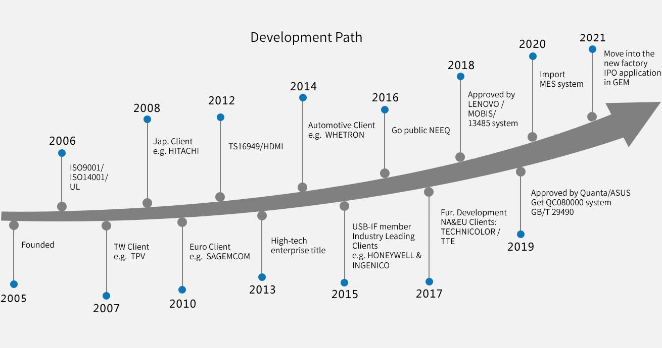 rbconn Electronic Technology Co., Ltd. was founded in 2005. It is a high-tech enterprise specializing in the designing, manufacturing and sales of precision connectors. Its products are widely used in the fields of consumer electronics, automotive electronics, network communications and industrial electronic equipment.